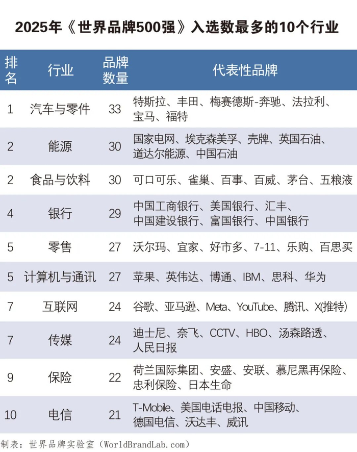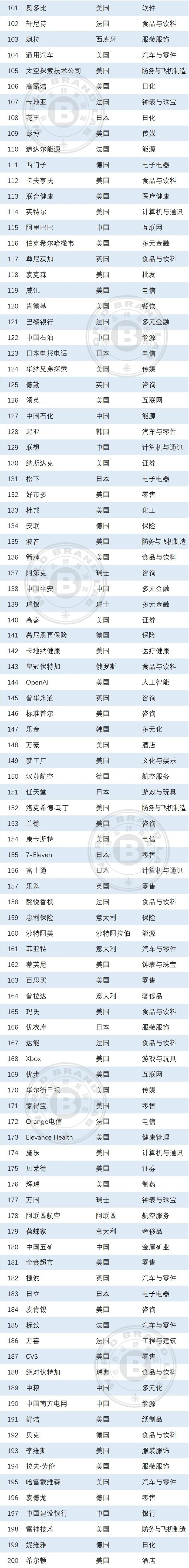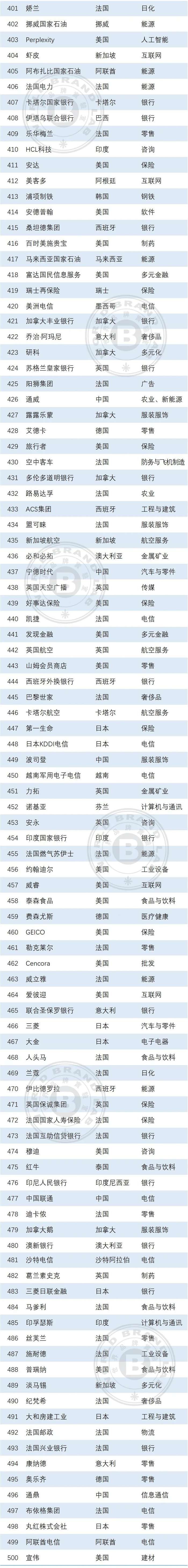 其他入選的行業(yè)還有互聯(lián)網(wǎng)(24個(gè))、傳媒(24個(gè))、保險(xiǎn)(22個(gè))和電信(21個(gè))。隨著人工智能時(shí)代的到來,和AI相關(guān)的科技品牌出現(xiàn)爆發(fā)式的增長。全球范圍內(nèi)普遍出現(xiàn)消費(fèi)增長乏力,食品與飲料、傳媒、奢侈品的排名出現(xiàn)整體下滑。